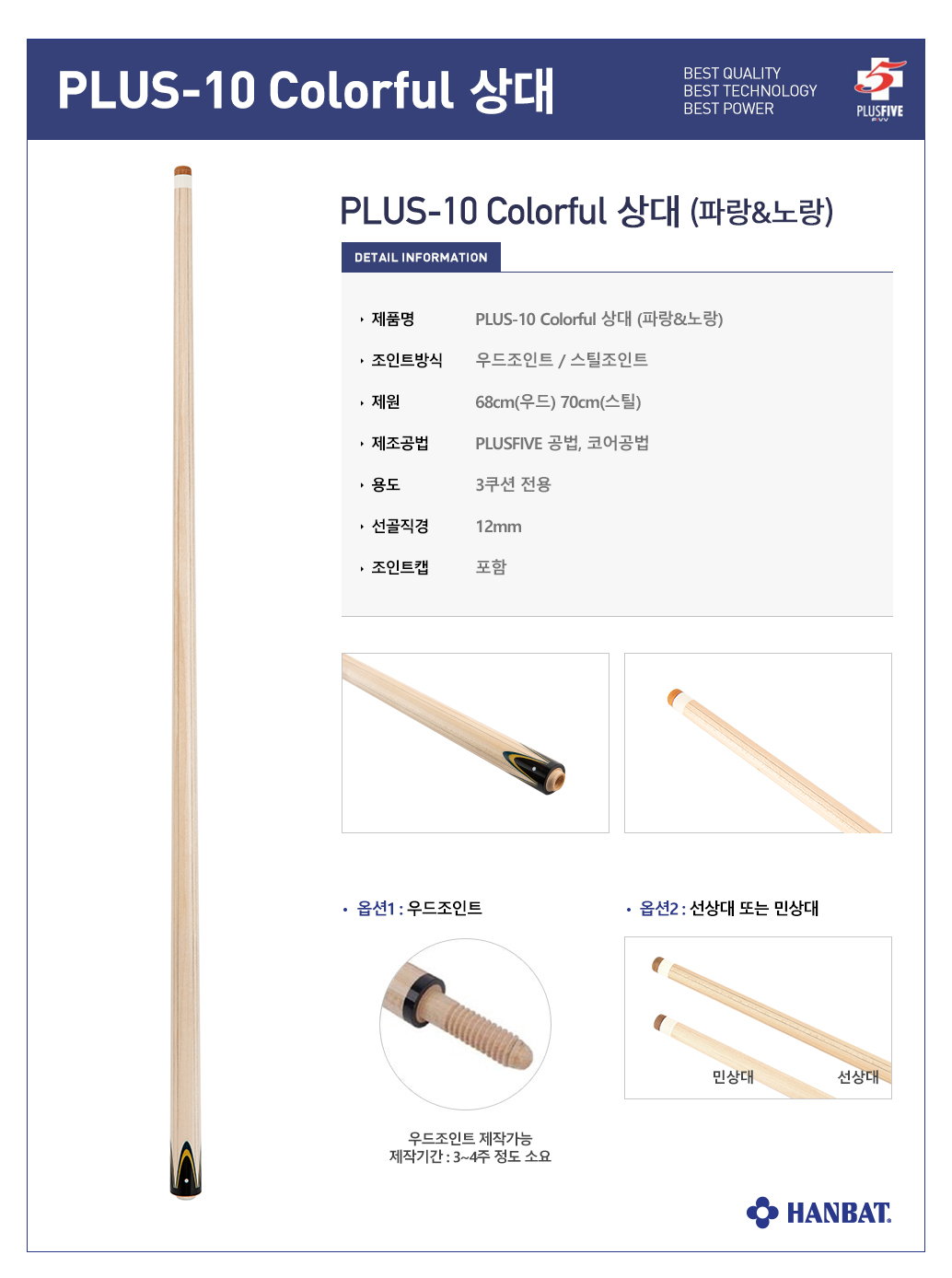한밭 THE PLUS-10 Colorful 상대 (파랑&노랑)