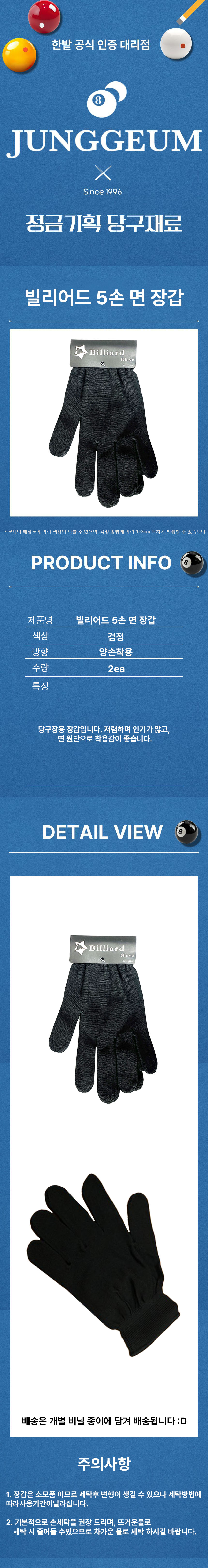 빌리아드 5손 면장갑